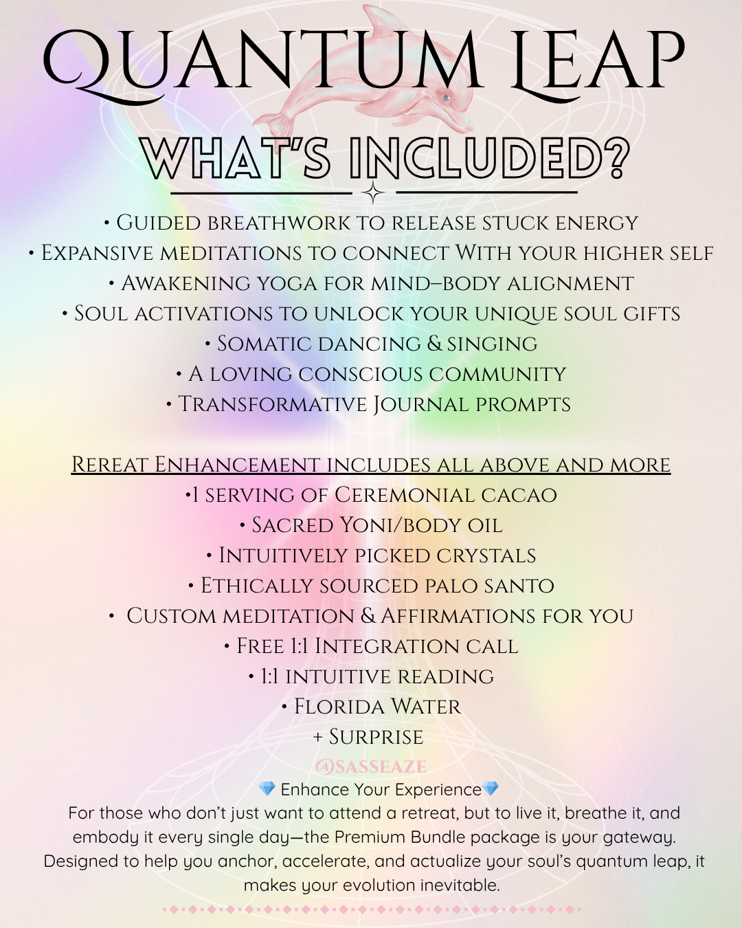 This is for those who want to Quantum Leap into their highest timeline and embody their higher self. This retreat is a three day immersion where we will be going deep. You can still transform your life from the comfort of your own home and safe space. This is so affordable and such a great deal for what I am offering. I want healing to accessible, it is your birthright to heal and live in alignment with your dream reality.